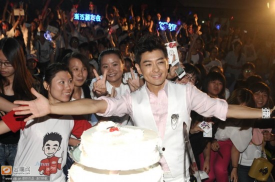 上海,13日,林志穎舉行生日會(huì),林志穎帥氣亮相獲贈(zèng)大蛋糕,與女粉絲親密合影擁抱來(lái)者不拒。