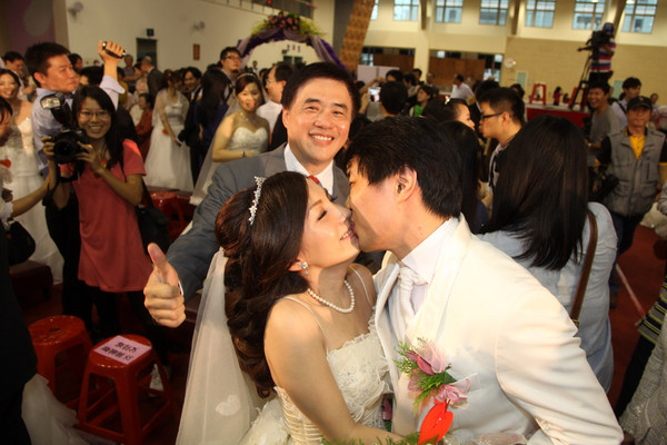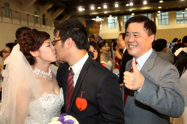 臺北市長郝龍斌2日主持市民婚禮,監(jiān)督新人親吻90秒鐘