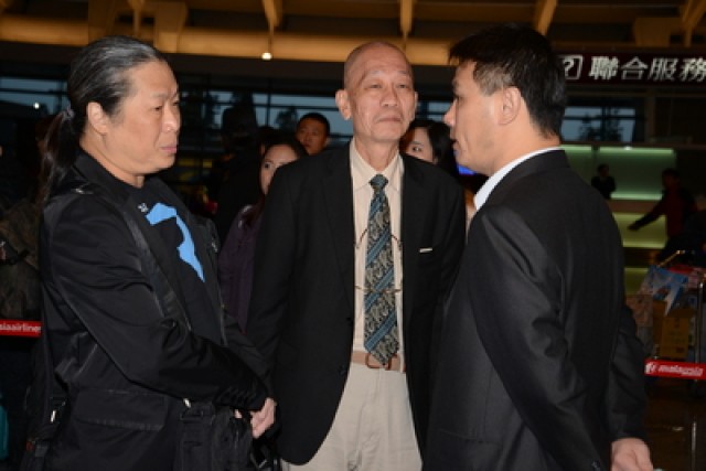 臺(tái)灣民眾許立民在馬來(lái)西亞遇害,妻子張安薇遭綁下落不明。張的哥哥張大公(左)與許立民二哥(中)等人,19日搭機(jī)前往沙巴,處理相關(guān)事宜,但相當(dāng)?shù)驼{(diào)。(臺(tái)媒圖)