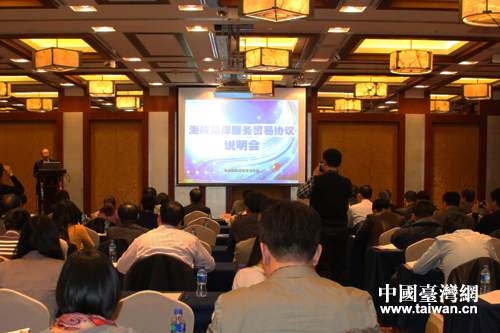 《海峽兩岸服務(wù)貿(mào)易協(xié)議》說明會在京舉行。(中國臺灣網(wǎng) 郭慶娜 攝)