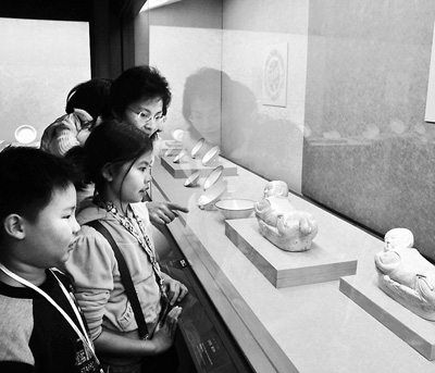 近日,臺(tái)北故宮館藏定窯瓷器特展開幕,臺(tái)北故宮精選132件作品展出,公眾可近距離感受定窯瓷器的風(fēng)采。定窯為我國宋代著名瓷窯之一,其白瓷作品頗受推崇。圖為1月10日觀眾在展廳內(nèi)觀看定窯嬰兒枕。