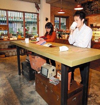 “小破爛”咖啡館提供桌位,客人可站著喝咖啡。臺(tái)灣《聯(lián)合報(bào)》圖