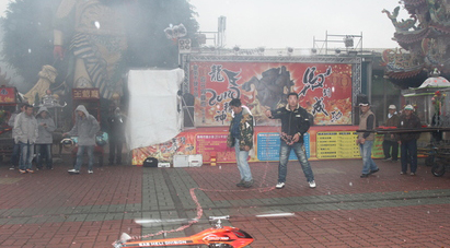 中國臺灣網(wǎng)2月13日消息 據(jù)臺灣媒體報(bào)道,為期2天2夜的元宵節(jié)臺南鹽水蜂炮,于今日上午8時(shí)在鹽水武廟正式啟炮。不過因?yàn)橄掠,直升機(jī)啟炮作業(yè)并不順利,直升機(jī)飛到半空中鞭炮突然熄火,3度經(jīng)由工作人員點(diǎn)燃后仍熄火,最后只好作罷。