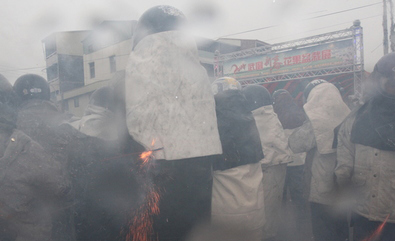 鹽水武廟隨后在武廟前廣場施放2座炮城,鹽水蜂炮犁轎繞境活動正式展開,今日白天武廟神轎將在鹽水郊區(qū)繞境,到了下午神轎回到武廟休息,估計(jì)今天晚上6時(shí)開始夜間繞境。