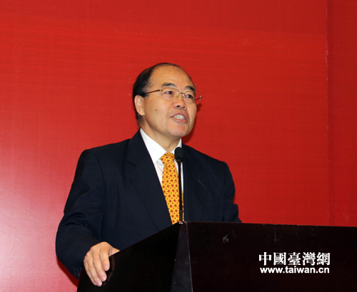 全國(guó)臺(tái)灣研究會(huì)執(zhí)行副會(huì)長(zhǎng)兼秘書(shū)長(zhǎng)周志懷代表主辦單位致辭。(中國(guó)臺(tái)灣網(wǎng)記者 李杰 攝)