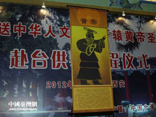 2012年清明前夕,陜西曾派專人恭送中華人文始祖軒轅黃帝圣像赴臺,臺灣同胞在臺中舉行了盛大的恭迎中華人文始祖軒轅黃帝圣像儀式,并將圣像供奉于“壬辰年中華民族海內外同胞聯合祭祖大典”上。(記者 雷愷)