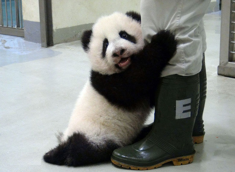 園方表示,“阿暢”一到新環(huán)境馬上就四處走動、嗅聞、標記領(lǐng)域、攀爬棲架,如果參觀面沒有太大的聲響,“阿暢”還會靠近鋼琴絲探索!鞍场焙腿撕苡H近,保育員進行動物訓練時,它居然還會四只腳都站在管理員腿上進食,讓保育員成就感瞬間飆升。