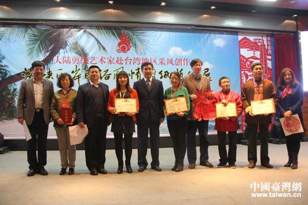 開幕式現(xiàn)場為剪紙藝術(shù)家頒發(fā)參展證書。(中國臺(tái)灣網(wǎng) 馬一娜 攝)
