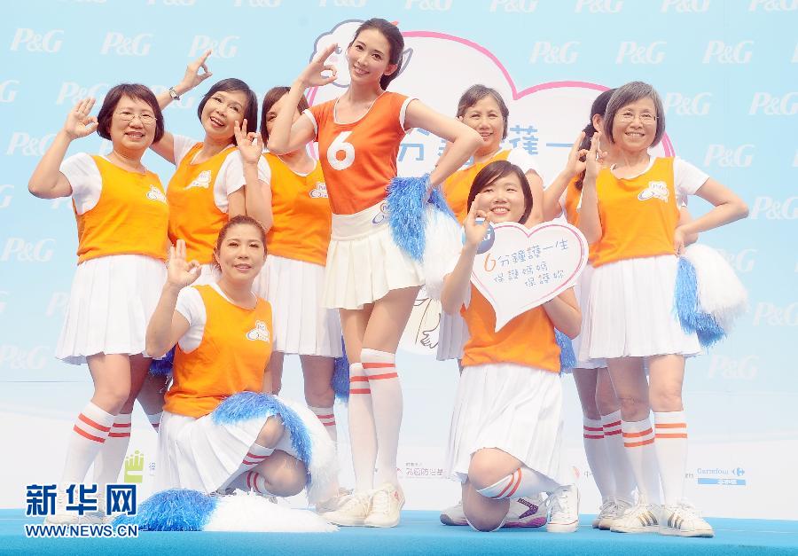 4月19日,林志玲(中)參加拉拉隊(duì)表演宣傳婦科癌癥防治。當(dāng)日,臺(tái)灣藝人林志玲在臺(tái)北市出席“6分鐘護(hù)一生”婦科癌癥防治宣傳活動(dòng)。林志玲呼吁女性朋友響應(yīng)“6分鐘護(hù)一生”的號(hào)召,每年定期做乳腺癌、子宮癌、卵巢癌等婦科癌癥篩檢,提早發(fā)現(xiàn)提早治療,幸福健康地生活。新華社發(fā)