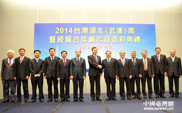 臺(tái)灣湖北周暨經(jīng)貿(mào)合作備忘錄簽約典禮。(中國(guó)臺(tái)灣網(wǎng) 陸勝 攝)
