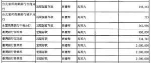 臺灣監(jiān)察部門網(wǎng)站上馬英九的部分存款明細(xì),他和夫人周美青去年的存款達(dá)到7293萬元新臺幣。