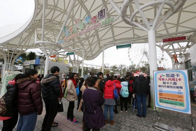 臺北市立兒童新樂園16日開幕,上午9時大批民眾在入口處排隊,等待入場。(圖:臺灣“中央社”)