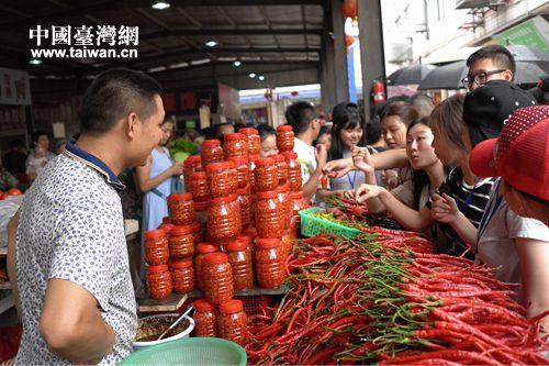中國臺灣網(wǎng)7月21日成都訊 7月21日,成都市金牛區(qū)黃忠菜市場來了一群特殊的客人,他們就是參加“尋麻問辣品四川”川臺學生川菜文化體驗營的20位來自臺灣與四川各大高校的學生。帶著尋找川菜香料的任務(wù),學生們分成小組走進菜市場,根據(jù)圖片尋找到相應(yīng)的香料。