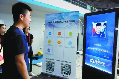 一旁的工作人員告訴記者,這就是今年北工大首次投入使用的“刷臉”報(bào)到系統(tǒng)!靶律耙呀(jīng)上傳了照片,報(bào)到現(xiàn)場(chǎng)進(jìn)行‘刷臉’,系統(tǒng)完成臉部數(shù)據(jù)的對(duì)比,后臺(tái)系統(tǒng)就知道他已經(jīng)到校了!必(fù)責(zé)提供技術(shù)支持的北京外研訊飛教育科技有限公司副總經(jīng)理陳紅斌說,這套人臉識(shí)別設(shè)備應(yīng)用在高校迎新在全國(guó)還是首次。