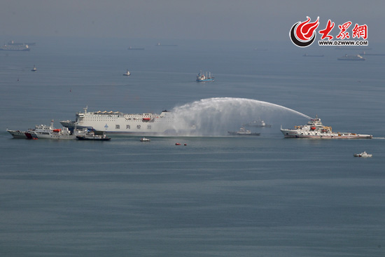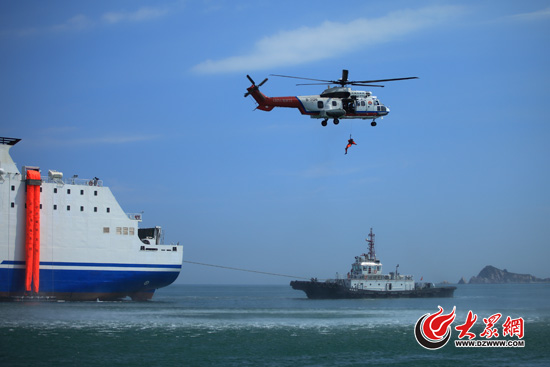 “2015年大型客船遇險(xiǎn)聯(lián)合搜救演習(xí)”在山東煙臺北部海域成功舉行,圖為演習(xí)現(xiàn)場