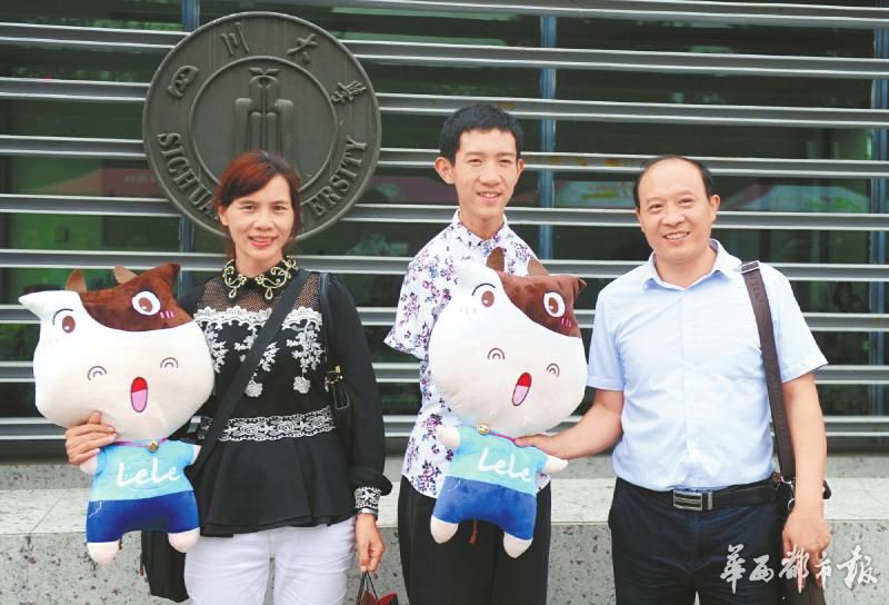9月12日,四川大學(xué)江安校區(qū),彭超和父母在校園門口合影。