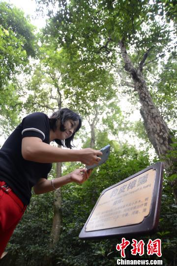9月15日,在湖南郴州三合村古樹(shù)群內(nèi),游客在用手機(jī)掃描樹(shù)牌上的二維碼。 譚志文 攝