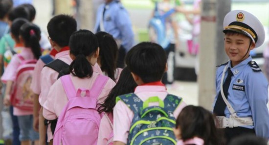 鄭州現(xiàn)最萌“娃娃交警” 小學(xué)生身穿制服指揮交通