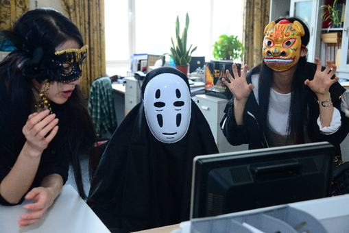 活動(dòng)主辦方宋城在接受采訪時(shí)說(shuō):“今天我們倡導(dǎo)員工戴面具上班,是景區(qū)秋季面具節(jié)活動(dòng)的一部分,我們希望通過(guò)這樣的形式,為員工恢復(fù)工作與生活之間的平衡發(fā)揮作用,減少工作壓力!