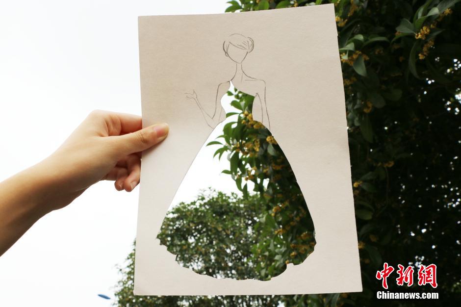 四川大學(xué)錦江學(xué)院女生腦洞大開,于日前策劃了一場別具一格的創(chuàng)意“時(shí)裝秀”,把校景天衣無縫地穿在了身上。熱衷于各種創(chuàng)意的大二女生楊云燕、王一帆、曾宇和馬瑞琳受到約旦時(shí)尚插畫師ShamekhBluw作品的啟發(fā),大膽嘗試設(shè)計(jì)、手繪、剪裁和拍攝,創(chuàng)造性地將時(shí)裝手繪的部分裁掉,以校園景色填補(bǔ)鏤空,呈現(xiàn)給大家一場新玩法的“時(shí)裝秀”。王一帆 攝