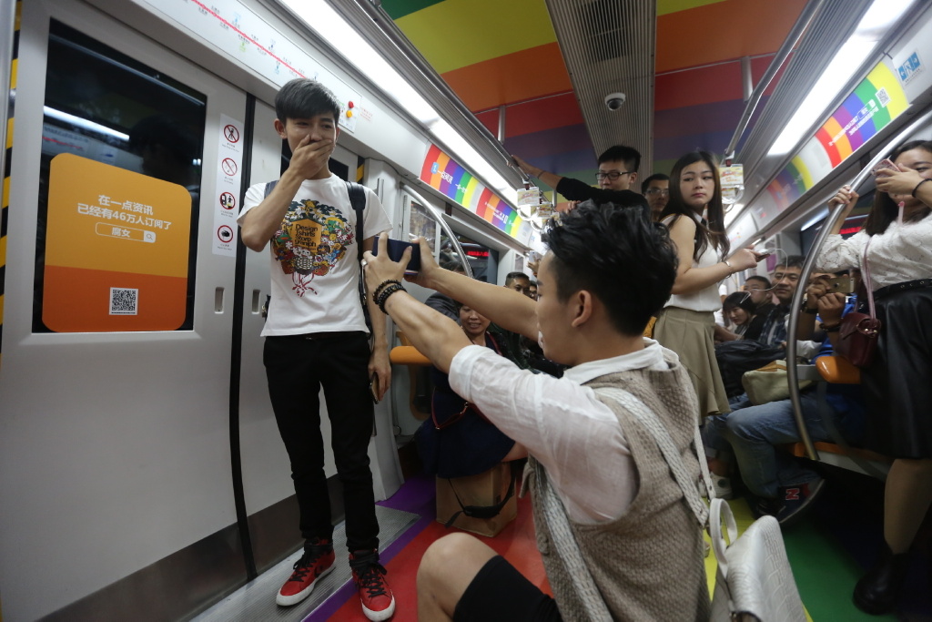 9月27日上午,在北京地鐵一號線的彩虹車廂內(nèi),驚現(xiàn)男男求婚,F(xiàn)場可以看到,一男子單膝跪地向另一男子求婚,求婚成功后兩人當相擁在一起。引發(fā)路人圍觀,現(xiàn)場很多人叫好,并對兩位獻上祝福。
