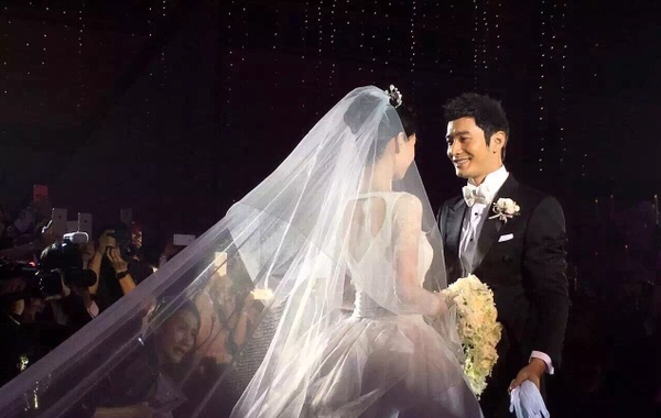 宣誓時黃曉明深情地望著Baby,在說出我愿意時,眼泛淚光。baby說到最后也哽咽著輕聲說“愛你”。