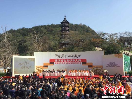 中新網(wǎng)南京10月27日電 (楊顏慈)27日,釋迦牟尼佛頂骨舍利供奉大典在南京牛首山佛頂宮舉行。海內(nèi)外108位高僧大德齊聚南京,參加法會。
