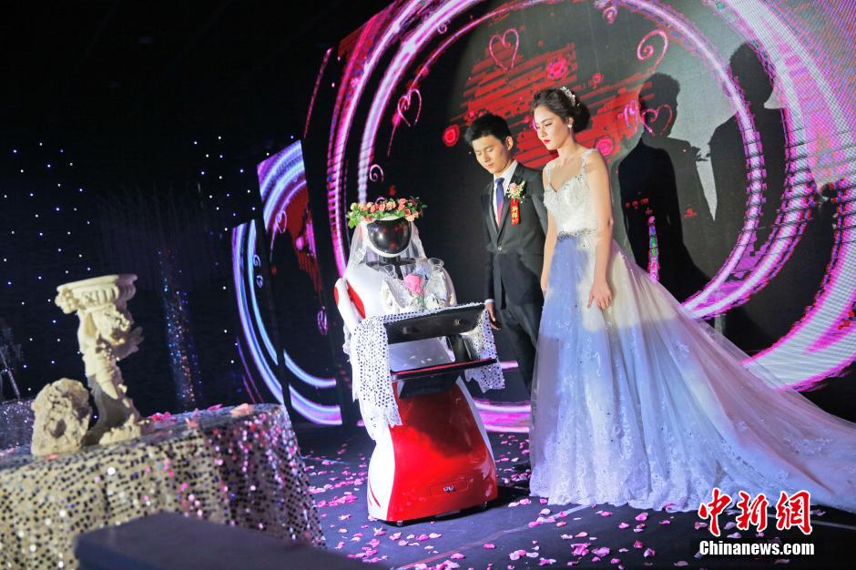 11月1日,在天津的一場(chǎng)婚禮上,一臺(tái)名為“昊越”的機(jī)器人擔(dān)任了“伴娘”的角色,見(jiàn)證了一對(duì)新人的幸福時(shí)刻。據(jù)悉,該機(jī)器人由天津一家科技公司研發(fā)的送餐機(jī)器人改造而成,它可以為新人遞上婚戒,送上語(yǔ)音祝福等。