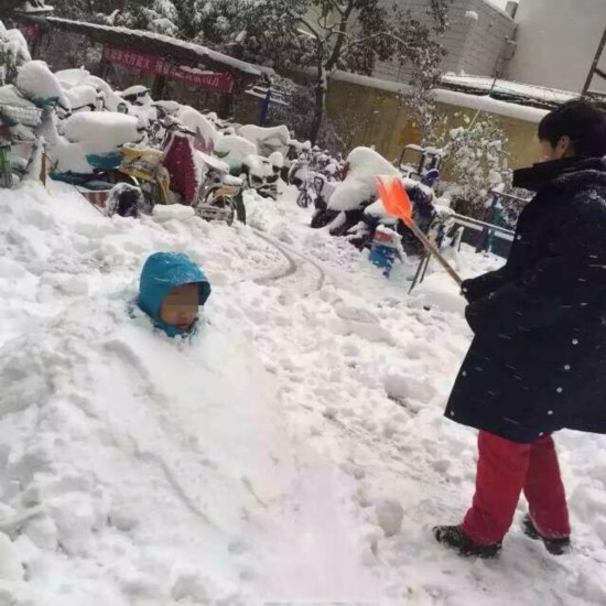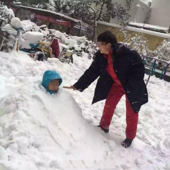 原標(biāo)題:堆雪人真人版:兒子被親媽拿雪包裹(圖)