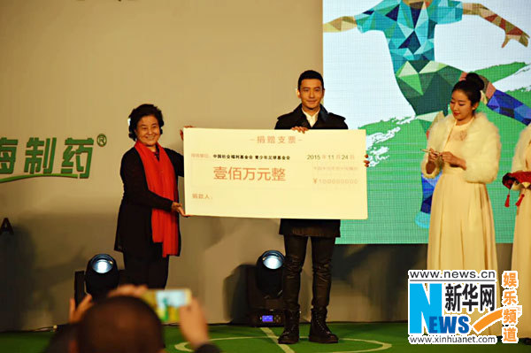 日前,中國·巴薩青島黃海足球?qū)W校啟動發(fā)布會在京舉行。黃曉明作為青島籍影星與巴薩足校校長、青島市體育局局長紀(jì)高尚等嘉賓共同出席了發(fā)布會,F(xiàn)場,黃曉明以個人名義捐出100萬元,為了“助力家鄉(xiāng)青島青少年足球事業(yè)”。
