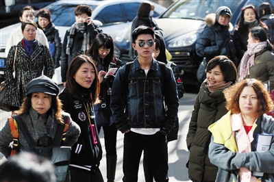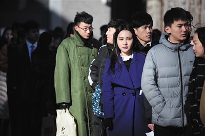 15日,中央戲劇學(xué)院,寒風(fēng)中考生在排隊(duì)等待進(jìn)入考場。
