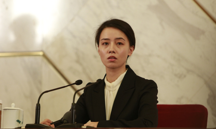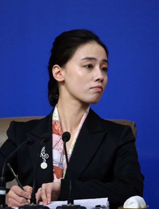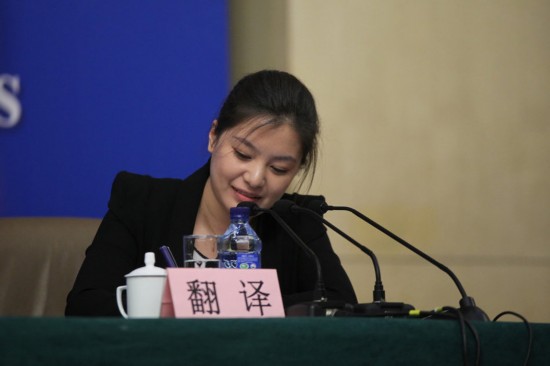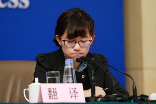2013年3月11日,北京,兩會(huì)新聞中心舉行的中央機(jī)構(gòu)編制委員會(huì)的新聞發(fā)布會(huì)上,神似趙薇的美女翻譯成為攝影師鏡頭的焦點(diǎn)。