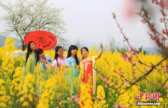3月7日是“女生節(jié)”,湖南南華大學(xué)的漢服愛好者們在桃花園中上演了一場“漢服秀”,以此弘揚(yáng)中國漢服文化。曹正平 攝