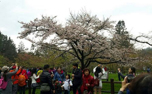 嘉義林管處阿里山工作站指出,工作站前的一棵“櫻王”,是在1918年從日本吉野縣移植而來,每年都最早開花。櫻王20日幾乎滿開,雖然這兩天假日,天空持續(xù)飄著雨,仍吸引游客拍照留念。