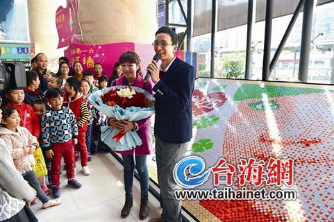 林育城事先“騙”小傅:“好思多”魔方工作室周日在外圖書城開一個(gè)公益講座。當(dāng)小傅來(lái)到“講座”現(xiàn)場(chǎng)時(shí),幕布迅速揭開,她開心得直捂嘴。魔方墻前,林育城手持鮮花邁步走來(lái),他迎來(lái)了人生中最幸福的時(shí)刻……