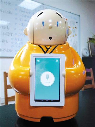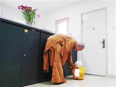 最近,一個(gè)呆萌的機(jī)器人在網(wǎng)上火了。和普通機(jī)器人一樣,它身高近60厘米,能跟人語(yǔ)音對(duì)話,能明白簡(jiǎn)單的指令;但不同的是,它身穿黃色僧袍,會(huì)說(shuō)佛經(jīng)佛法,還動(dòng)不動(dòng)就說(shuō)“我去問(wèn)問(wèn)我?guī)煾浮。它就是一個(gè)叫賢二的機(jī)器僧。昨日,新京報(bào)記者前往龍泉寺——賢二機(jī)器僧的家進(jìn)行了探訪。