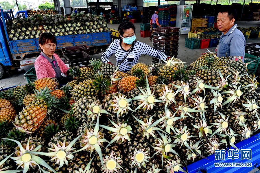 嘉義縣大林鎮(zhèn)的果農(nóng)在裝運鳳梨銷往市場。日前,臺灣鳳梨進入盛產(chǎn)期,果農(nóng)正在大量采收上市。鳳梨種植是臺灣農(nóng)業(yè)的支柱產(chǎn)業(yè),也是臺灣三大名果之一,臺灣鳳梨以其果形好、甜度高、香味濃郁深受市場歡迎。新華社記者 張國俊 攝