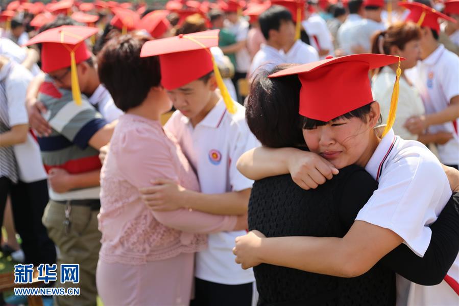 5月18日,學生們在成人禮上同家長相擁。