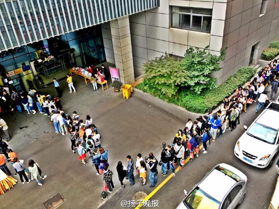 5月20日,成雙成對的情侶在南京鼓樓民政局外排起長隊等待領證。民政局8點半開始登記,6個窗口全開。據了解。最早來排隊的6點就到了,在蘇州姑蘇區(qū),排隊的新人們也不少。(揚子晚報 裴睿 周曉青 )