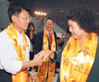 大高雄市長候選人陳菊與楊秋興昨天都出席“圣地西藏”特展開幕儀式,兩人暫時放下政治紛擾,藉宗教為民祈福。