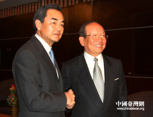 王毅會(huì)見中國(guó)國(guó)民黨副主席蔣孝嚴(yán)(中國(guó)臺(tái)灣網(wǎng) 焦瑩瑩 攝)