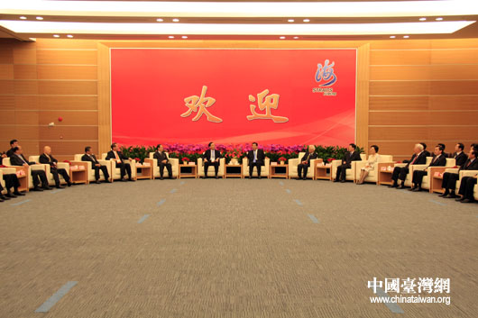 中共中央政治局常委、全國政協(xié)主席賈慶林會見出席首屆海峽論壇的兩岸各界人士。(中國臺灣網(wǎng) 鐘寶華 攝)