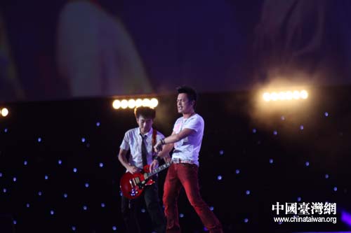 歌星張信哲在“中華情·海峽緣——金橋之夜”大型綜藝晚會上演唱《愛就一個(gè)字》(中國臺灣網(wǎng) 邵磌 攝)