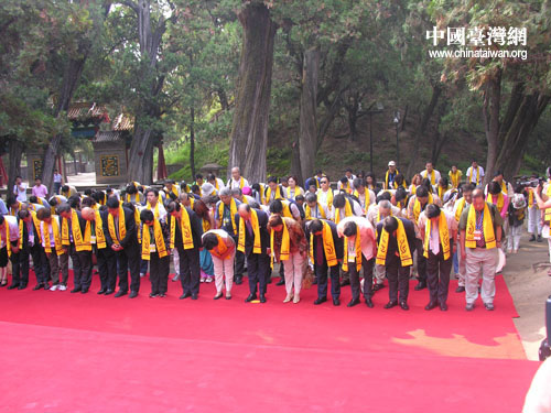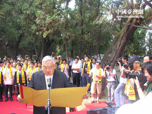 中國(guó)臺(tái)灣網(wǎng)7月19日陜西黃陵縣消息 7月19日上午,參加“情系長(zhǎng)安——兩岸文化聯(lián)誼行”活動(dòng)的160余位兩岸文化界人士,在黃帝陵恭祭軒轅黃帝。臺(tái)灣嘉賓團(tuán)顧問(wèn)、臺(tái)灣世新大學(xué)教授、中華民俗藝術(shù)基金會(huì)董事長(zhǎng)曾永義恭讀祭文。以下為祭文全文。