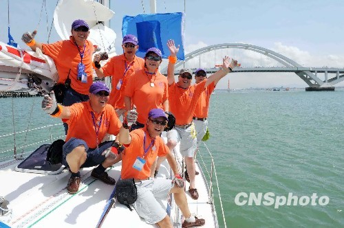 記者在廈門五緣灣看到,十五艘帆船同時升起主帆,彩旗飄飄、運(yùn)動員進(jìn)行曲激昂,水手整齊列隊(duì)站在甲板上接受海峽兩岸貴賓檢閱;廈門口岸、邊檢、海事、海關(guān)、檢驗(yàn)檢疫等部門的工作人員為參賽船只、船員快速辦理出關(guān)離港手續(xù)。