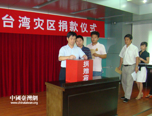 8月13日,江西省臺辦、臺聯(lián)舉行了向臺灣災(zāi)區(qū)捐款儀式,全體干部職工慷慨解囊,江西募集款項3萬余元人民幣,募集款項將直接轉(zhuǎn)交重災(zāi)區(qū)臺南市紅十字會。