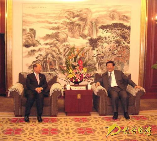 山東省省長(zhǎng)姜大明與臺(tái)灣工商協(xié)進(jìn)會(huì)理事長(zhǎng)黃茂雄(你好臺(tái)灣網(wǎng) 圖)