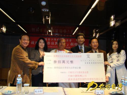 沒想到第二天就獲知大陸中鋼集團和廣東清遠碧桂園物業(yè)發(fā)展有限公司愿意各捐出150萬元人民幣,專項援助臺灣少數(shù)民族教育。