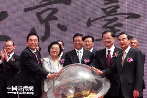 中國國民黨榮譽(yù)主席連戰(zhàn),中共中央政治局委員、中共北京市委書記劉淇,全國政協(xié)副主席、臺盟中央主席林文漪,中共中央臺辦、國務(wù)院臺辦主任王毅,海協(xié)會會長陳云林,北京市市長郭金龍等出席了開街儀式,并參觀了北京臺灣街的臺灣百大特產(chǎn)館和五桂樓霧峰林家《百年滄桑 忠義千秋》圖片展。
