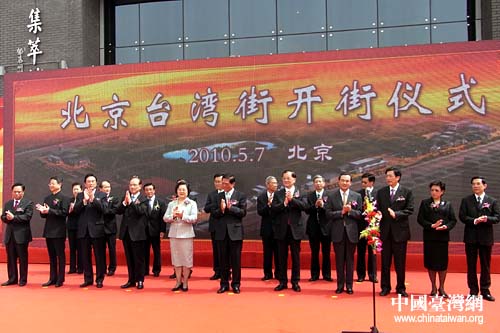 5月7日,北京首條臺灣文化主題商業(yè)街——北京臺灣街正式開街。中國國民黨榮譽(yù)主席連戰(zhàn),中共中央政治局委員、中共北京市委書記劉淇,全國政協(xié)副主席、臺盟中央主席林文漪,中共中央臺辦、國務(wù)院臺辦主任王毅,海協(xié)會會長陳云林等為臺灣街開街。(中國臺灣網(wǎng) 董潔 攝)